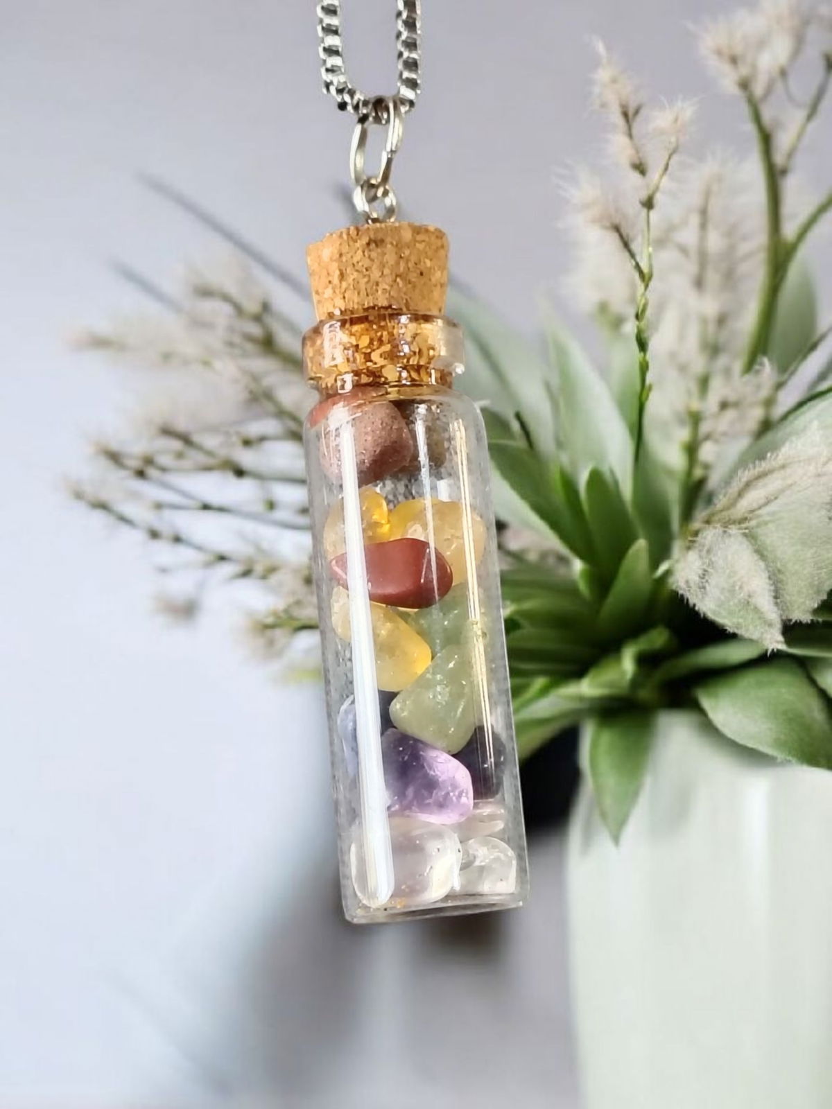* Collar: Botella Con Piedras 7 chakras,