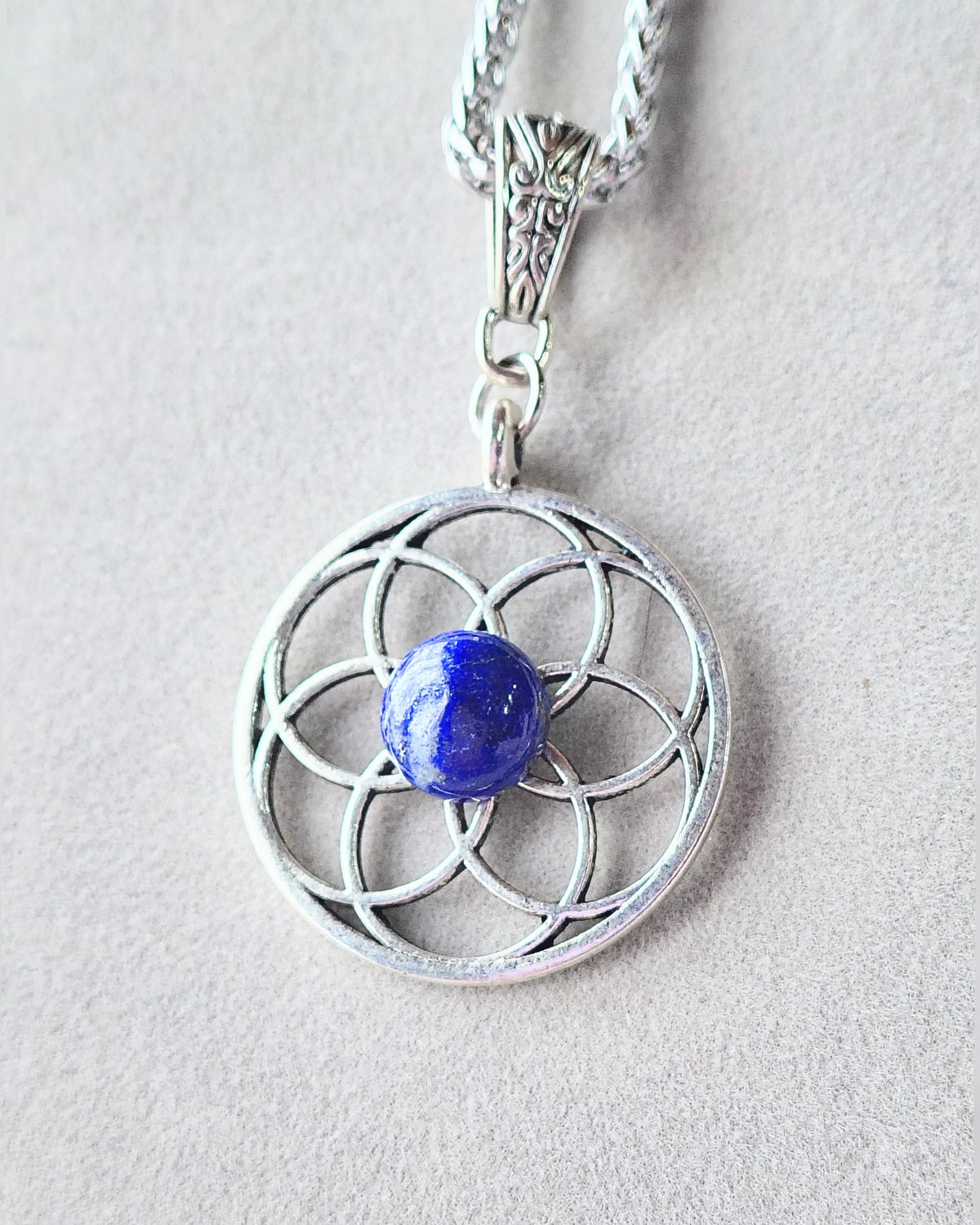 Este delicado collar cuenta con una cadena de acero de 45 cm, resistente y de alta calidad, ideal para un uso diario cómodo y duradero. Su diseño se complementa con un dije en forma de mandala flor de la vida, elaborado en acero, que aporta un brillo sutil y sofisticado.