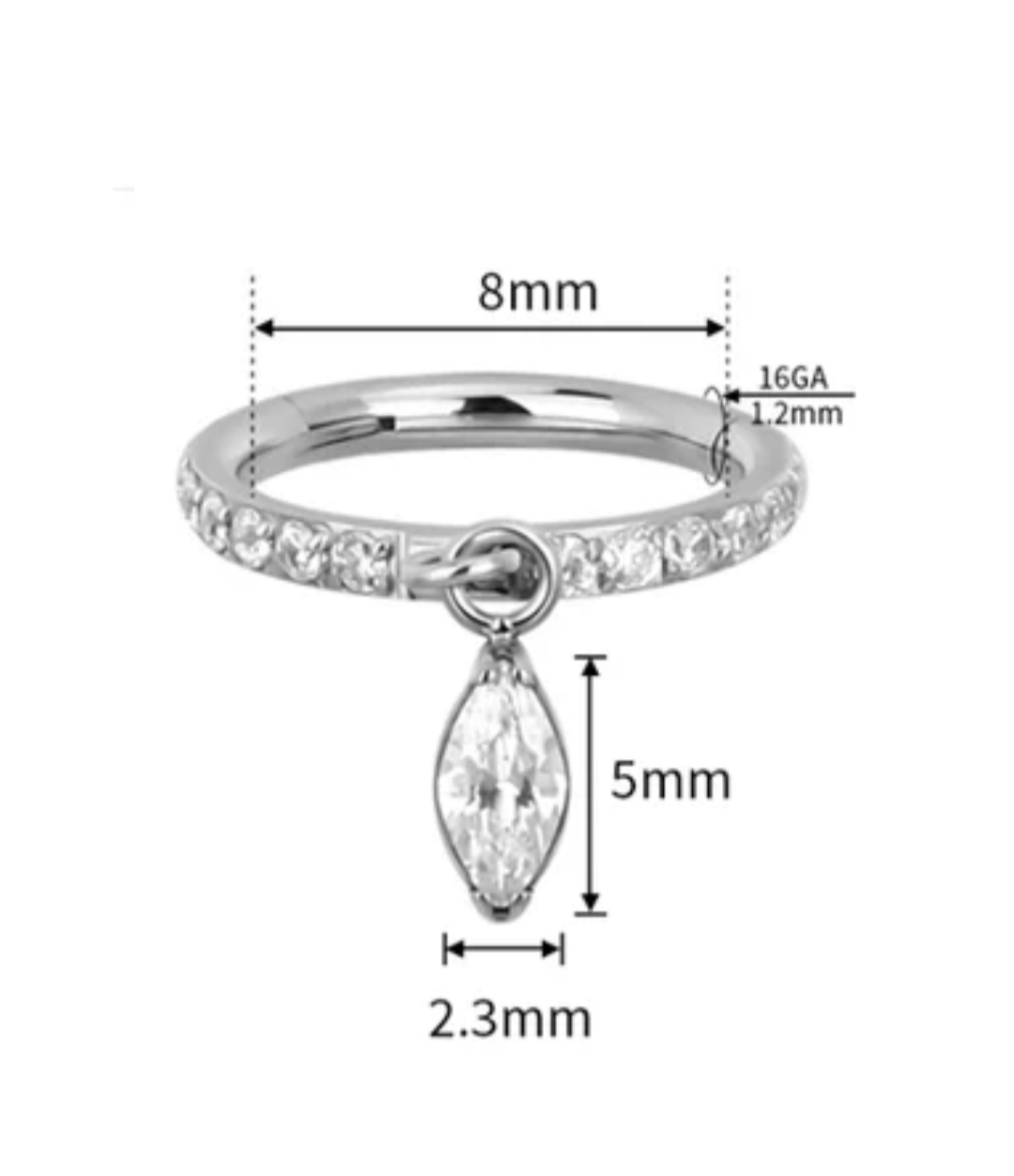 Ideal para las perforaciones: Helix, Tragus, Lóbulo, Daith, Septum, Ombligo, Smile, Nostril (perforación hecha en 1.2), entre otros