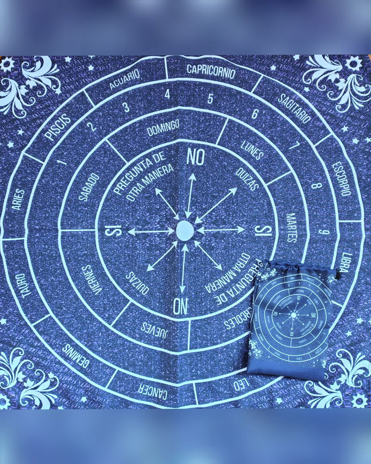 Este complemento es ideal para tus lecturas de péndulo, diseñado con respuestas clásicas como "Sí", "No", y "Quizás"; además de incluir letras y números para consultas más detalladas. Este accesorio versátil es ideal tanto para principiantes como para expertos que buscan un soporte claro y funcional para interpretar las respuestas de su péndulo.