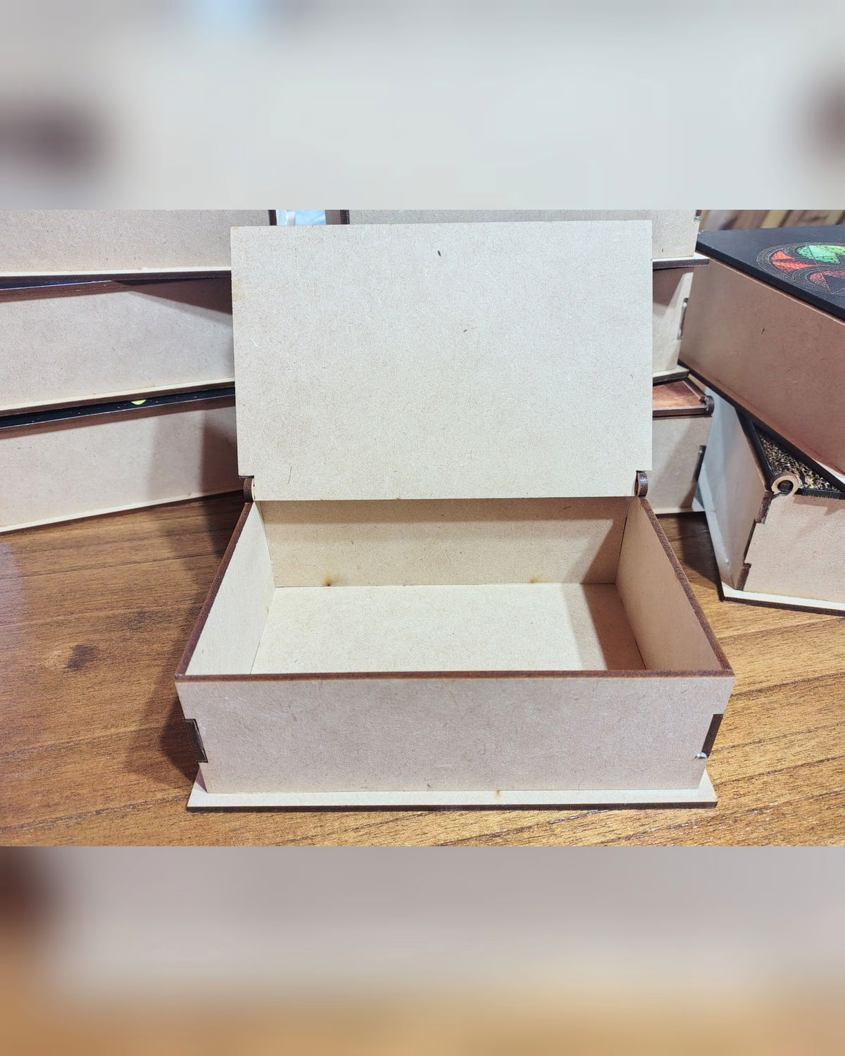 Material: Fibrofácil, con diseño en vinilo en la tapa.