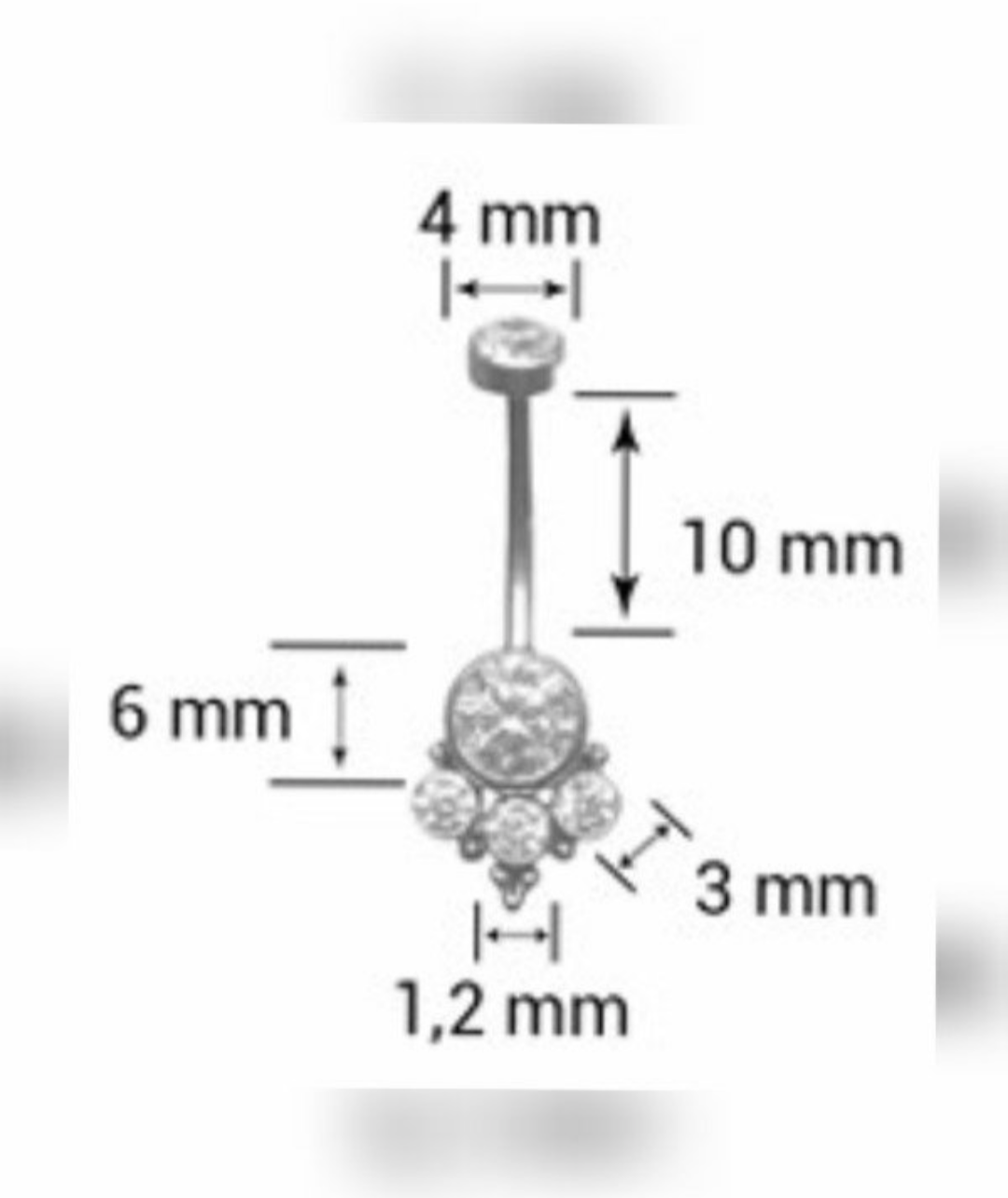 Ombligo. Banana Paw Cristal- Filigranas. Largo 10 mm